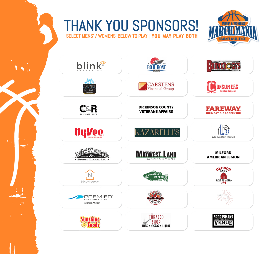 DEADLINE TO SUBMIT BRACKETS: THURS., MARCH 19TH @ 10AM You may play both men’s and women’s! Mens' Bracket Womens' Bracket